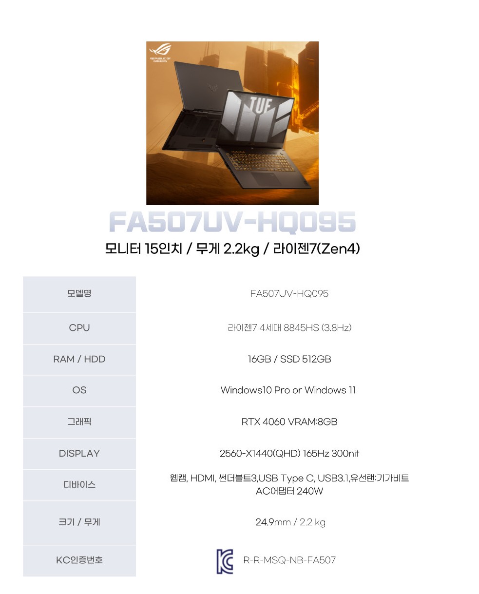 위더스컴퓨터 ASUS 노트북 ASUS TUF Gaming A15 FA507UV-HQ095 (512GB)